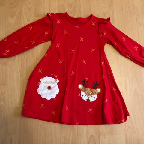 Super sød julekjole sælges . Den er brugt få gange og fremstår faktisk som ny . Den er i str 116= 6 år. Min datter er vokset fra den . Den sælges for 30kr