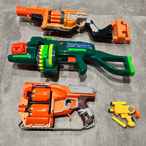 Skumgummi bilerne skydes afsted med pistolen. Inkl løs dele