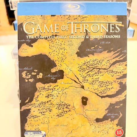 Game of Thrones The Complete Seasons 1-4 Blu-ray boks. Indeholder sæson 1, 2, 3 og 4 af tv-serien samlet i én udgivelse på Blu-ray. Boksen rummer alle afsnit fra de fire første sæsoner samt diverse ekstramateriale