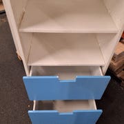 Skabet har en moderne design med to låger øverst og skuffer nederst. Kan evt bruges på et børneværelse , godt med plads,Bemærk at mail, chat og beskeder ikke besvares, og varen skal købes på knappen "Gå til varen"