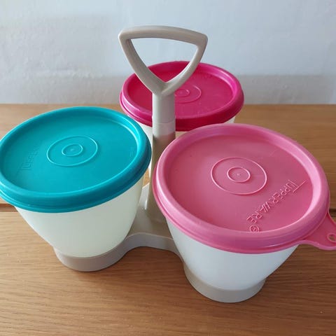 Tupperware 3 liters opbevarings beholder hvid med rødt låg sælges.