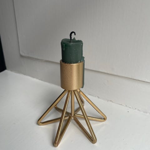 Smuk og stilren lysestage i sten-/resinlook med guldfarvet kant og messingholder.