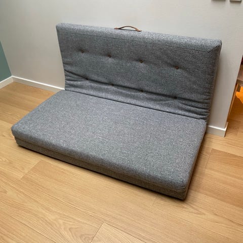Kvalitets foldemadras i grå tekstil fra Innovation Living. Madrassen er tung, med gode tykke skummadrasser. Betrækket kan lynes af og vaskes.