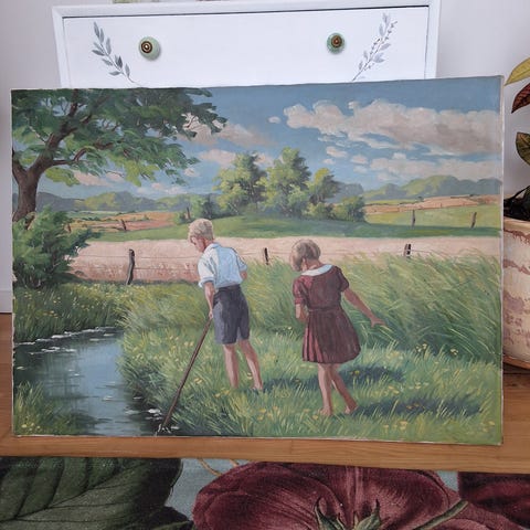 Oliemaleri, b: 27 h: 21, Indtagende lille oliemaleri - billederne taler for sig selv