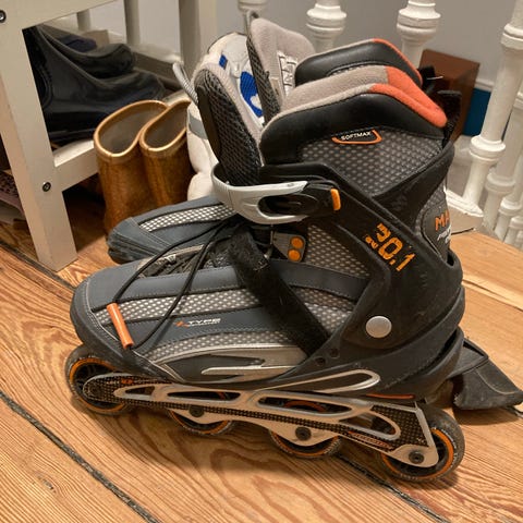 Atlanta X3H rulleskøjter i størrelse 39. Farven er primært grå og sort med gule detaljer. Modellen har hårdt skaft med polstret inderstøvle, justerbare spænder og velcrorem for fastspænding. Rulleskøjterne har hælbremse bagpå og flere hjul monteret i række (inliners). Egnede til almindelig rulleskøjteløb på asfalt og lignende underlag.