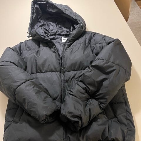 NA- KD ubrugt vinter frakke, med meget mørkt blå/sort farve.
