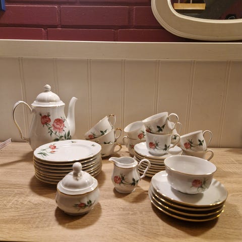 Porcelæn, Kaffestel, Christineholm, vinter stemning fra firkløver, 12 par kopper kande, sukker og fløde samt kagemand Alt som nyt aldrig brugt