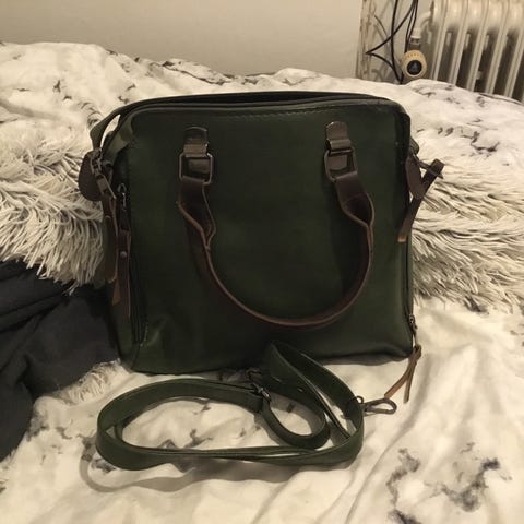 Størrelse højde 30 cm bredde 31 cm indvendig lynlåslomme og mobil lomme.
