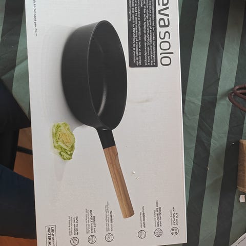 Eva Solo stegepande i sort aluminium med håndtag i egetræ
