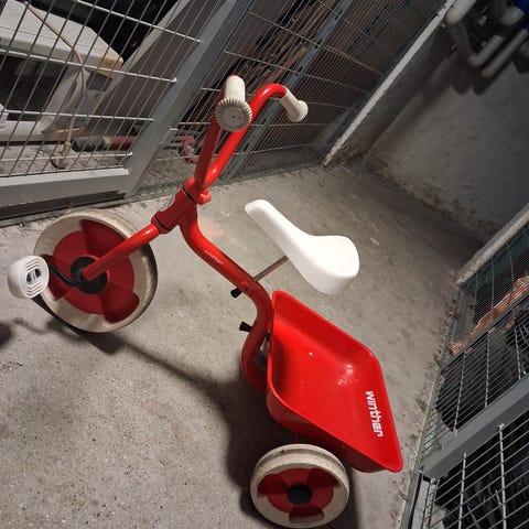 Winther Viking trehjulet cykel med 10" hjul i rød. Cyklen har et kraftigt stel, solide gummihjul og en sort saddel. Bagpå er der lad til transport af legetøj eller andre småting. Egnet som børnecykel til mindre børn, fx i institution eller hjemme i indkørslen og på legepladsen.