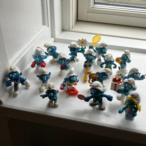 Retro Cast away Smølf. Pæn stand, lidt slidt næse. Højde 5 cm.