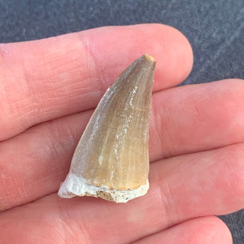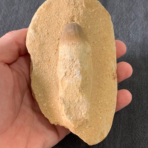 Meget stort og flot stykke underkæbe fra en mosasaur (forhistorisk havøgle fra Kridttiden).
