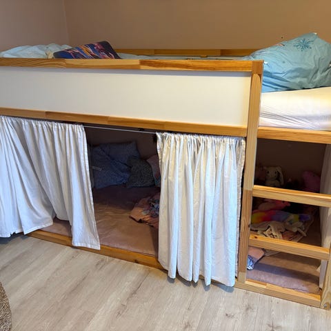 Sælges seng fra ikea. 4 år gammel.Kan laves fra lav til høj. Sengegardin samt madrassen følger med i prisen.Meget sjov for leg.
