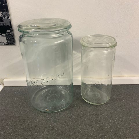 Holmegaard Kubus glasbeholdere i rektangulær form i klart glas. Sættet består af flere beholdere i forskellige højder, som kan stables. Velegnet til opbevaring i køkkenet, fx til tørvarer, rester eller servering af mindre retter. Beholderne er i glas så indholdet er let at se, og de kan bruges både til hverdag og ved borddækning.