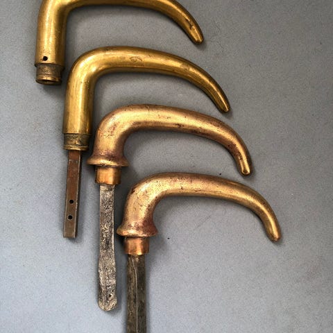 Foto 6-8 Unikke massive messing greb fra 1800-tallet og de 2 mindste til 199,-/stk og de 2 store 299,-/stk.