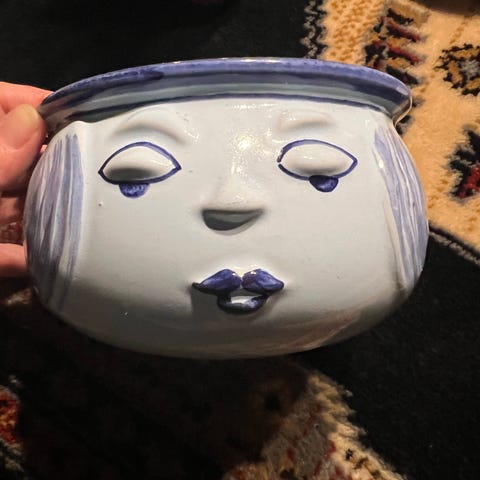 Ancher Iversen urtepotte med ansigtsmotiv keramik blå fra 60’erne