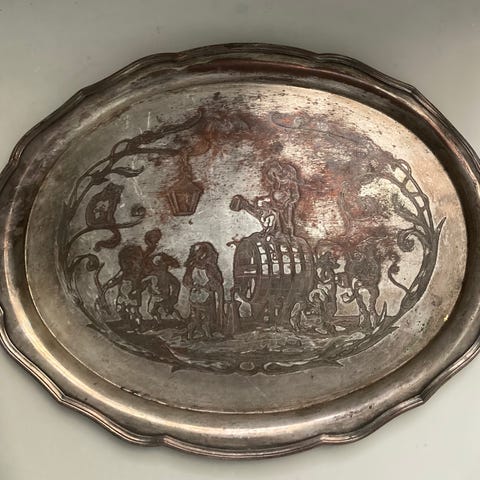 Vintage bakke i pletsølv-vinranker og gravering. Perfekt til dekoration eller servering