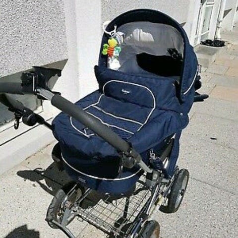 Sælger en meget solid og komfortabel Emmaljunga barnevogn (Mondial / Edge Duo Combi) med Classic stel, lift/bæretaske og sportsdel.