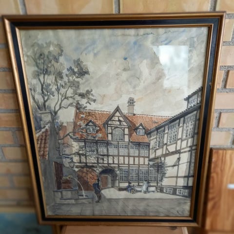 Ikke tryk – ægte akvarel på papir med tydelig signatur og årstal.