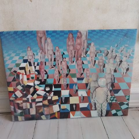 Akrylmaleri, b: 25 h: 50, 2 Musikanter