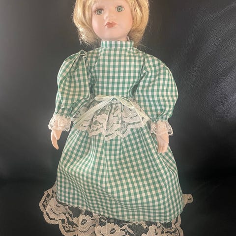Gammel porcelæns dukke. Højde ca. 44 cm.