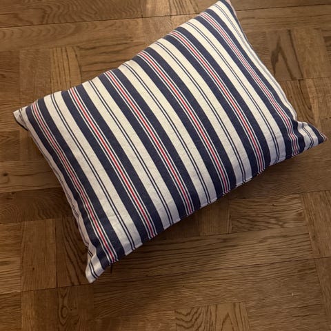 Lexington pyntepude med bamsemotiv på forsiden. Puden er kvadratisk og i lys, neutral farve med strikket eller vævet struktur. Forsiden har motiv af en bamse med T-shirt med hjerte og flagdetalje. Velegnet som pyntepude i stue, børneværelse eller soveværelse.