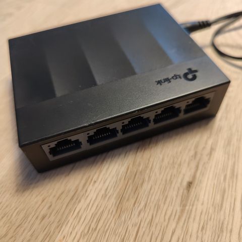 TP-Link TL-SG105 netværksswitch med 5 gigabit Ethernet-porte til kablet netværk.