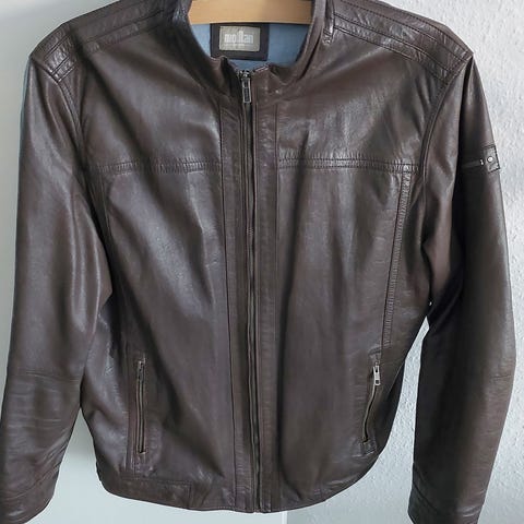 Vi har en anden annonce med en lignende læderjakke. Den er dog godt brugt: