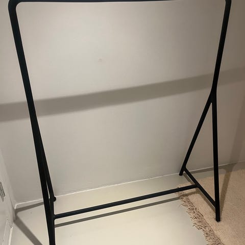 Tøjstativ med 4 hjul og indstilleligt både i højden og i længden.