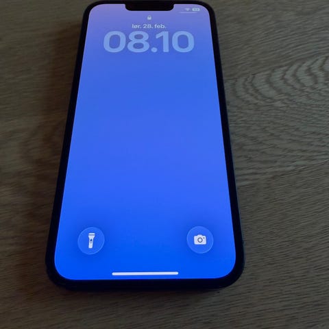Apple iPhone 14 smartphone med 128 GB intern hukommelse. Modellen har fuldskærmsdisplay med notch og dual-kamera på bagsiden. Leveres i original æske med USB‑C til Lightning-kabel som vist på billederne. Velegnet til almindelig brug, streaming, foto og apps med god lagerplads til billeder, video og programmer.