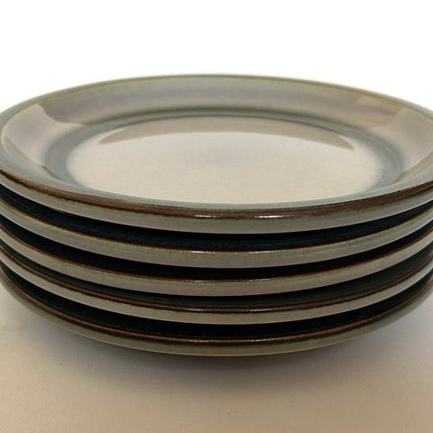 2.stk. Bing & Grøndahl Tema stentøj tallerkener med blå og brun kant. Tallerkenerne er fremstillet i stentøj og er mærket "B&G Tema Stoneware" på undersiden. Velegnet som frokost- eller desserttallerkener i et stel fra samme serie eller som enkeltstående dele i borddækningen.
