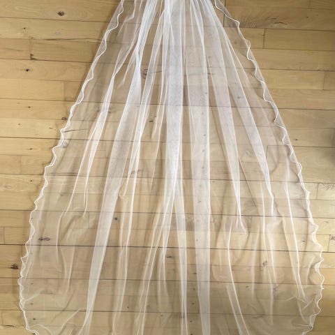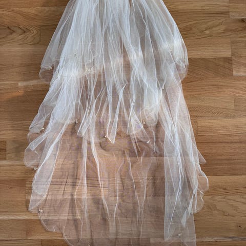 Brudeslør med blondekant med sølv-/guldfunklende tråde og palietter. Nyt