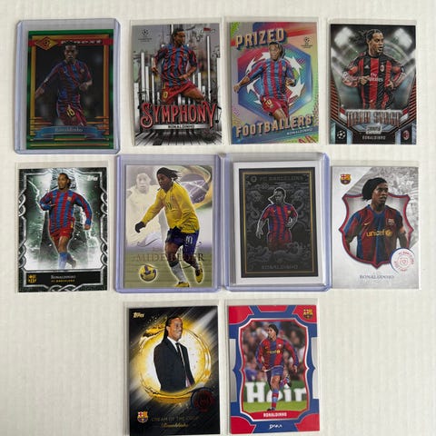 Magic Box International Cristiano Ronaldo Prodigio 2003 fodboldkort. Kortet viser Cristiano Ronaldo i Sporting CP-trøje på forsiden og har løven fra klubbens emblem på bagsiden. Serienavnet "Prodigio 2003" og nummeret 28 fremgår på bagsiden. Kortet er opbevaret i plastlomme, som ses på billederne. Velegnet til samlere af fodboldkort og memorabilia fra Cristiano Ronaldos tidlige karriere.