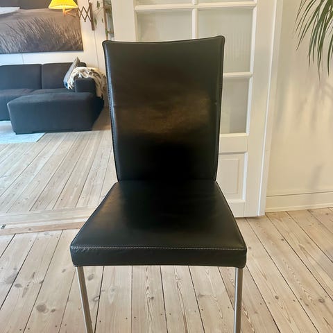 Slå til, flotte ægte læder stole, 4 stk for 800 kroner, fra ikke ryger hjem samt uden dyr, kan afhentes hurtigst muligt efter aftale.
