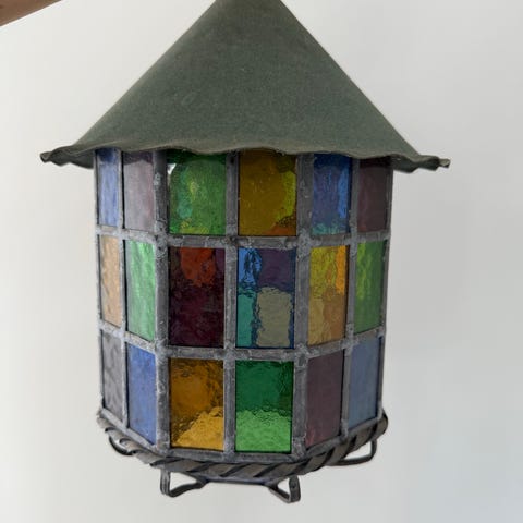 Gammel udendørs lampe med farvet glas