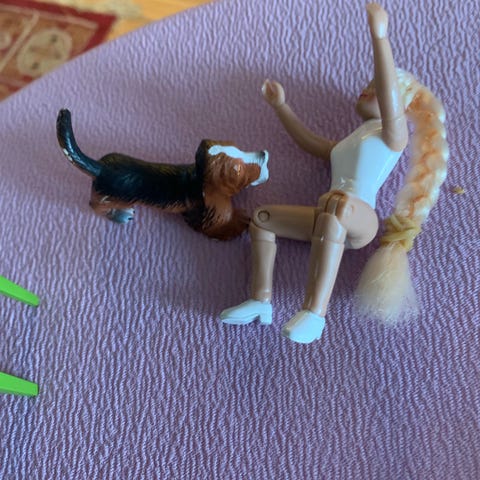 Lundby tæppe til dukkehus med blomster motiv. Tæppet har et mørkt midterfelt med dekorativt blomstermønster og lysere kant med mønster rundt om. Der er frynser i begge ender. Egnet som tilbehør til Lundby dukkehus eller andre dukkehuse i tilsvarende skala. Sælges plus evt porto