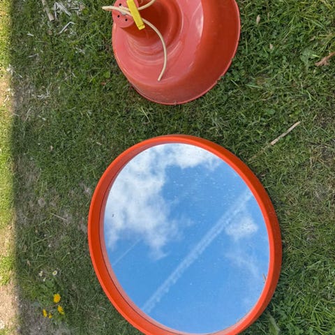 New Works vægspejl i rundt design med justerbart ophæng. Spejlet hænger i en snor fra en rund vægknage og har en cylindrisk modvægt nederst, som gør det muligt at regulere højden. Velegnet som dekorativt spejl i entré, soveværelse eller stue.