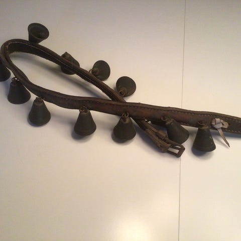 Får/gede klokke med læderrem metal brun