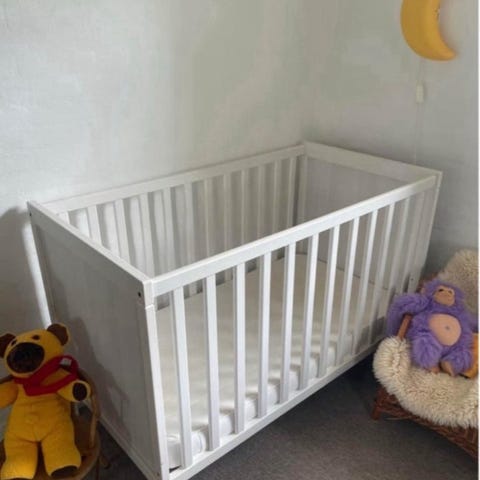 Ældre tremmeseng med mulighed for at sænke den ene side.