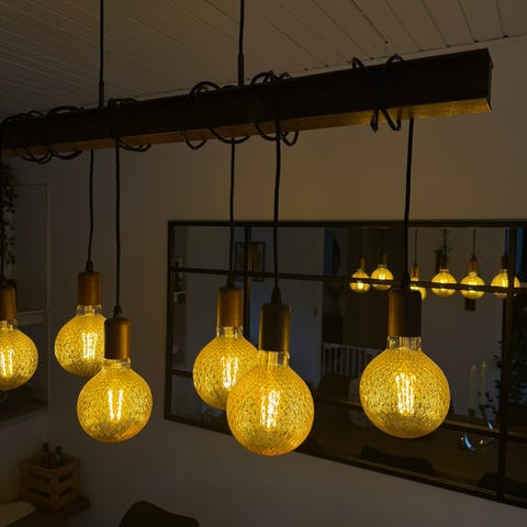 Loftslampe Florence langbordspendel, messing/ambre. Længde ca. 1,5 meter