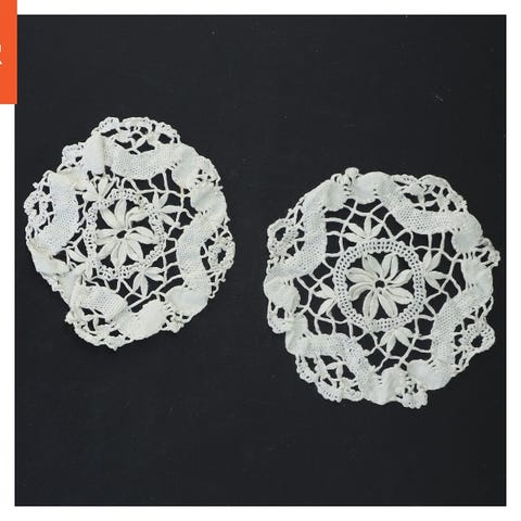 Hæklet blonde bordskåner sæt hvid bomuld
