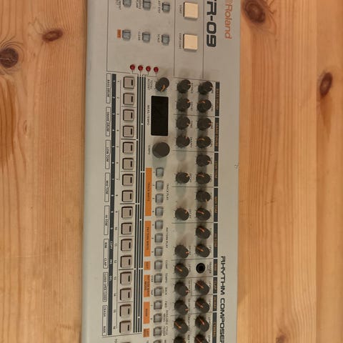 Behringer RD-9 Rhythm Designer trommemaskine. Analog trommemaskine med flere kanaler og individuelle kontroller til hver lyd. Enheden har indbyggede sequencer-funktioner, tempo- og pattern-styring samt forskellige knapper og drejeknapper til justering af lyd og rytmer. Velegnet til musikproduktion og livebrug, hvor der ønskes klassiske trommemaskinelyde med direkte adgang til parametre på frontpanelet.