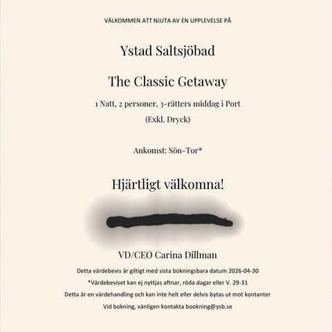 2x Gavekort. 2prs. 1 overnatning, spa og middag.