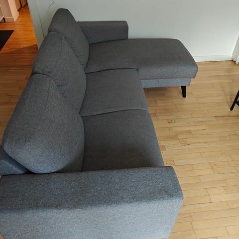 Hjørnesofa med chaiselong fra IKEA.