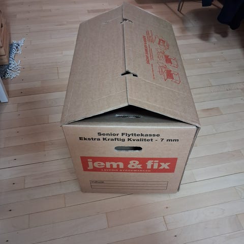 Der er ca 70-80 flyttekasser , de er ekstra kraftige, meget kraftige og almindelige… prisen er 10 kr pr stk for de mest kraftige ellers 7 kr for øvrige…