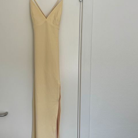 Design by Si udgået halle kjole er kun brugt en gang. i str. XS, men en S kan også gå. Lang, figursyet model med tynde stropper og lille dråbeudskæring foran. Kjolen er fremstillet i glat polyester og er orange. Har en lille plet ( se billed) men ses kun tæt på ❤️