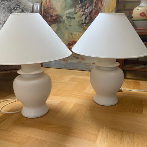 Sælger et sæt på 2 ens bordlamper med sort, firkantet lampeskærm, sort lampefod/søjle og kromdetaljer. De giver et flot og klassisk udtryk og passer perfekt som natbordslamper, på en skænk eller i stuen.
