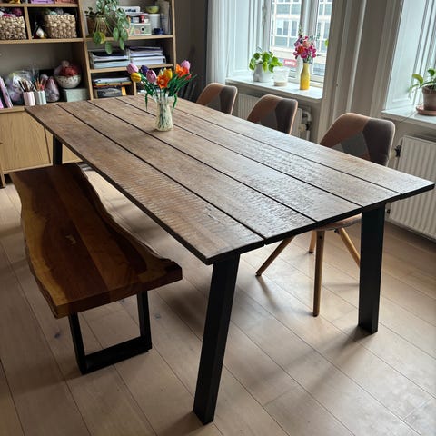 Bordet kan fint bruges som det er. For ekstra lækker finish, kan man slibe det let og give en gang olie for at få det til at fremstå nyt.