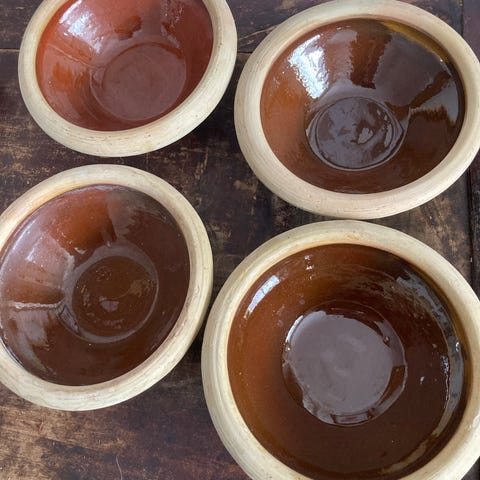 MA skål i brun keramik med dekoreret motiv i bunden. Skålen har rund form og glaseret overflade. Velegnet til servering