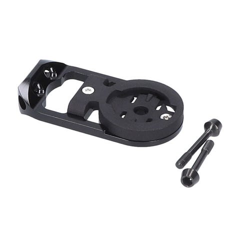 Garmin cykelcomputer holder i sort plast. Monteres på styret og passer til Garmin cykelcomputere med standard Garmin-beslag. Leveres med afstandsstykker og monteringsdele som vist på billederne. Egnet til brug på racercykel, mountainbike eller citybike, hvor cykelcomputeren ønskes placeret foran styret.